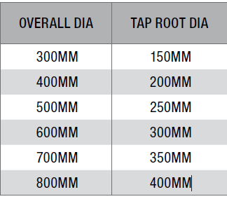 Digga TP Tree Planting Auger with overall diameter 300 to 800mm & Tap Root Diameter of 150mm to 400mm suits 65mm round hub